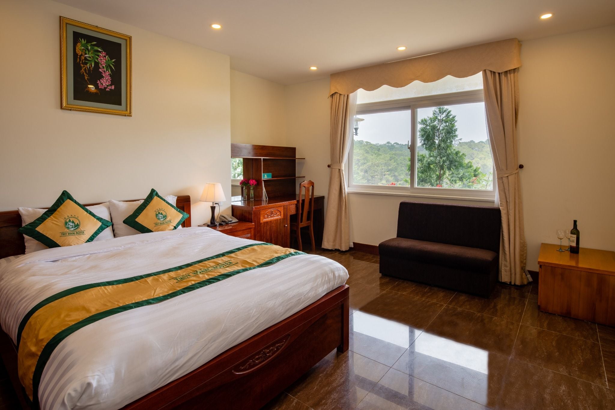 - Cửa sổ với view nhìn ra sân vườn hoặc rừng thông xanh ngát